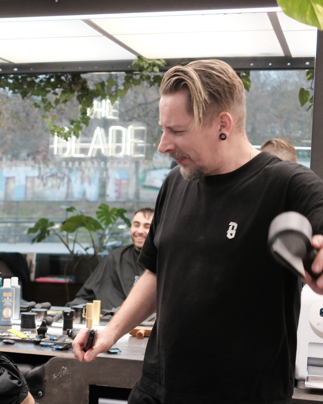 The Blade ist Barbercraft. Traditionelles Handwerk, perfektioniert für heute. Leidenschaft und Präzision in jedem Schnitt, jeder Rasur, jedem Fade. Erlebe es selbst.